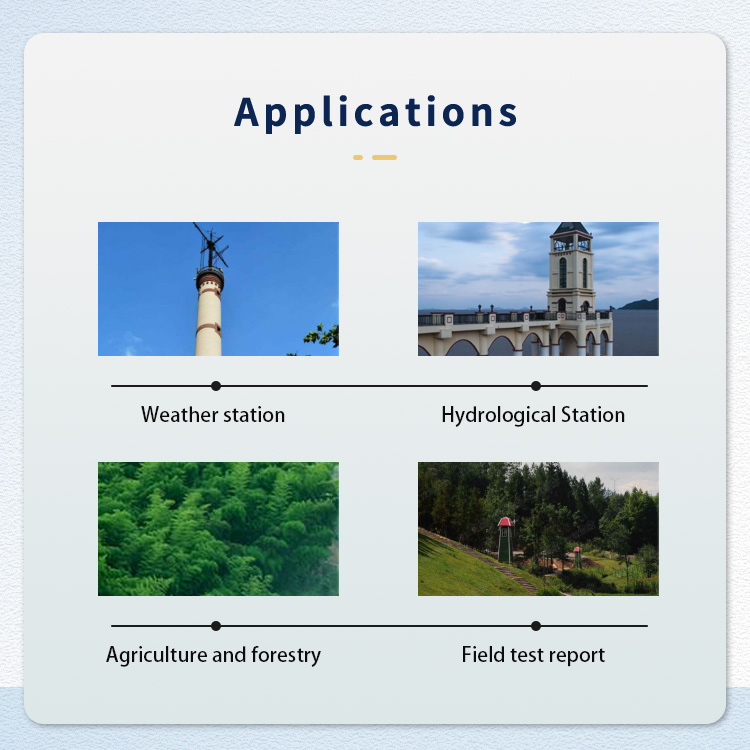 This rainfall sensor can be used in meteorological stations (stations), hydrological stations, agriculture and forestry, national defense, field observation and reporting stations and other relevant departments, and cooperate with the rainfall recorder independently developed and produced by our company to measure precipitation, precipitation intensity, precipitation time, etc. It can provide original data for flood control, water supply dispatching and hydropower station reservoir water regime management.