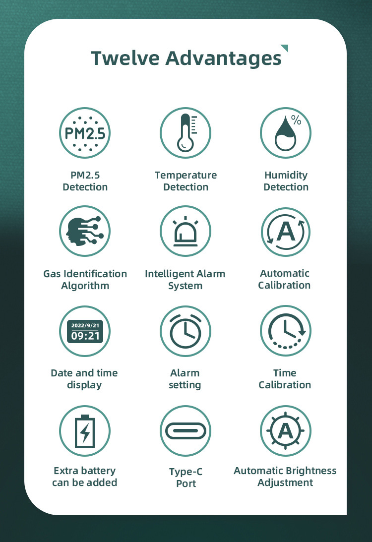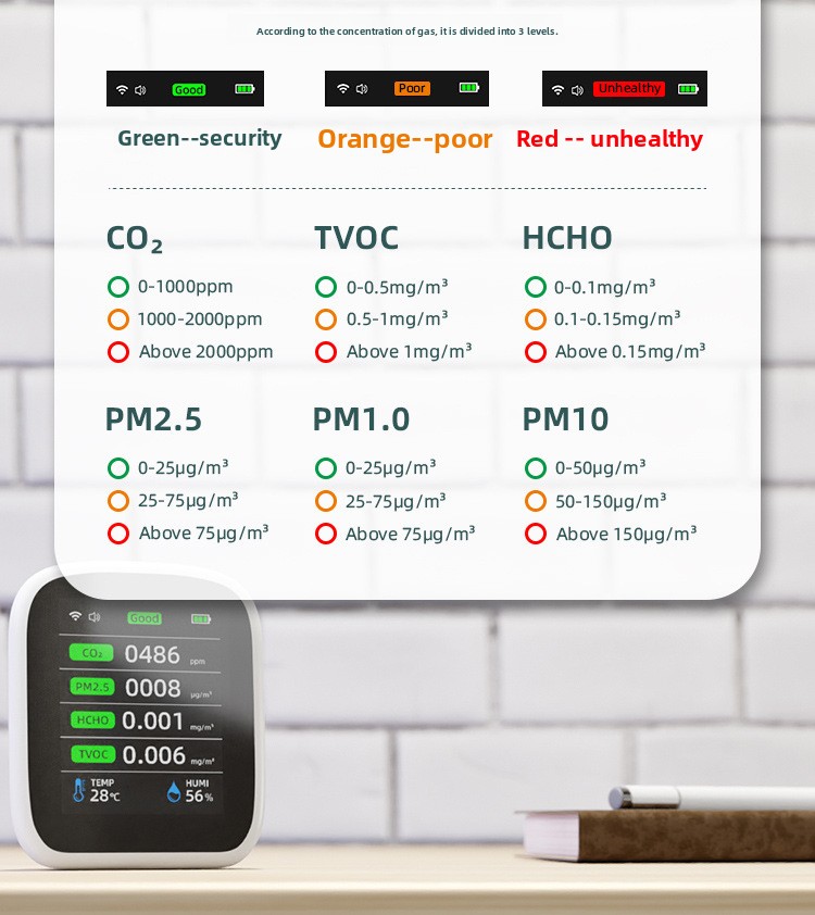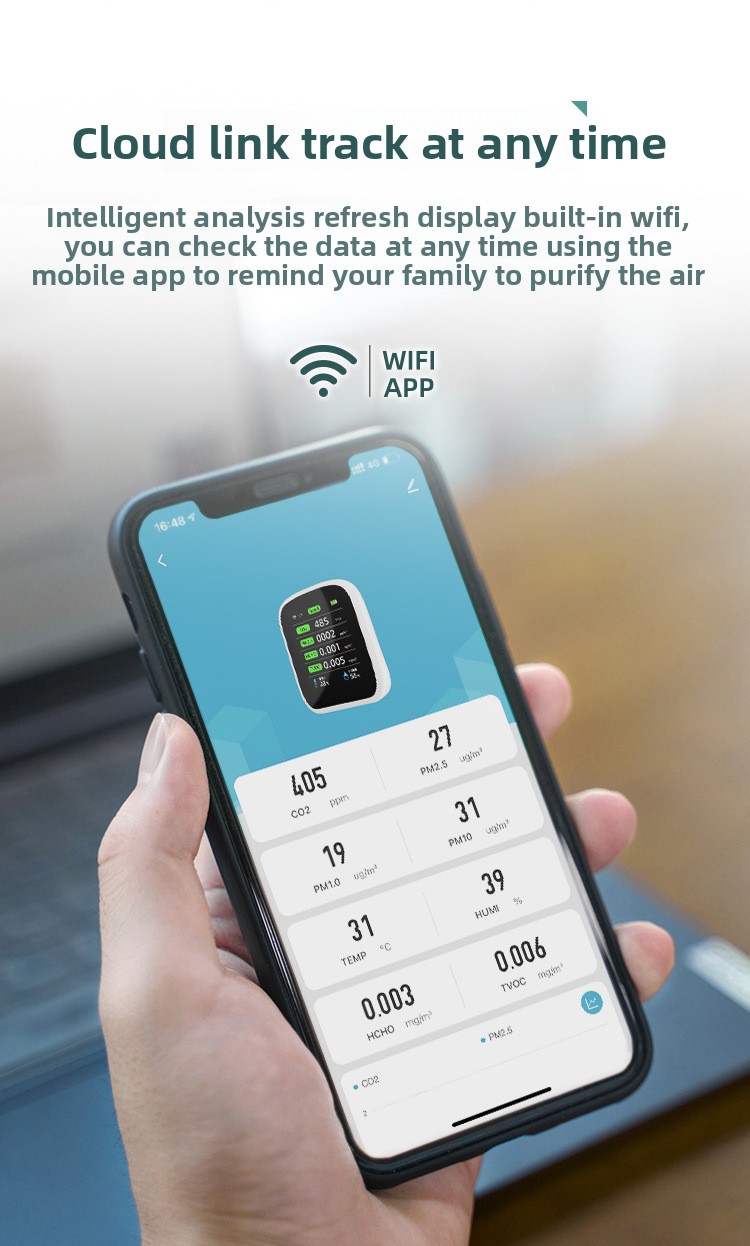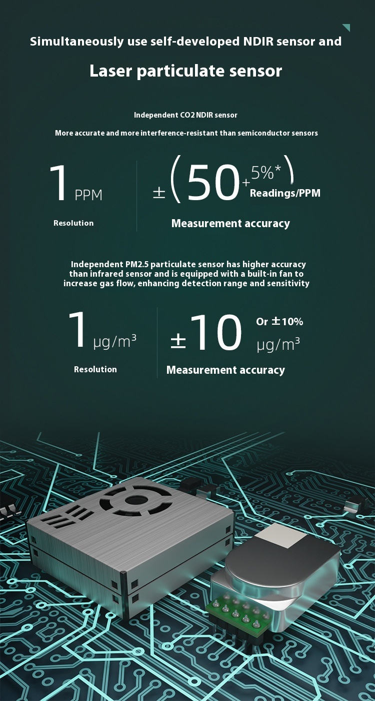 This Connection Is a High-End Version,Co2 as Infrared Sensor,PM2.5For Laser Sensor,Tuya SmartAPP,Supports phone control