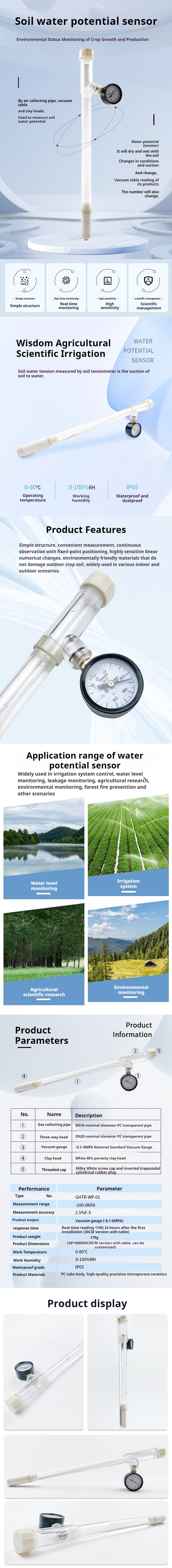 GHTR-WP-01 Soil Water Potential Sensor is an excellent product developed and produced by our company for monitoring the environmental status of crop growth and production.