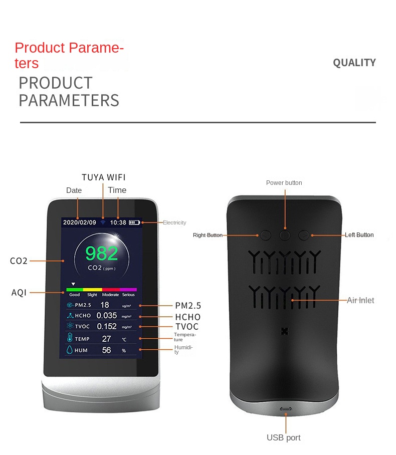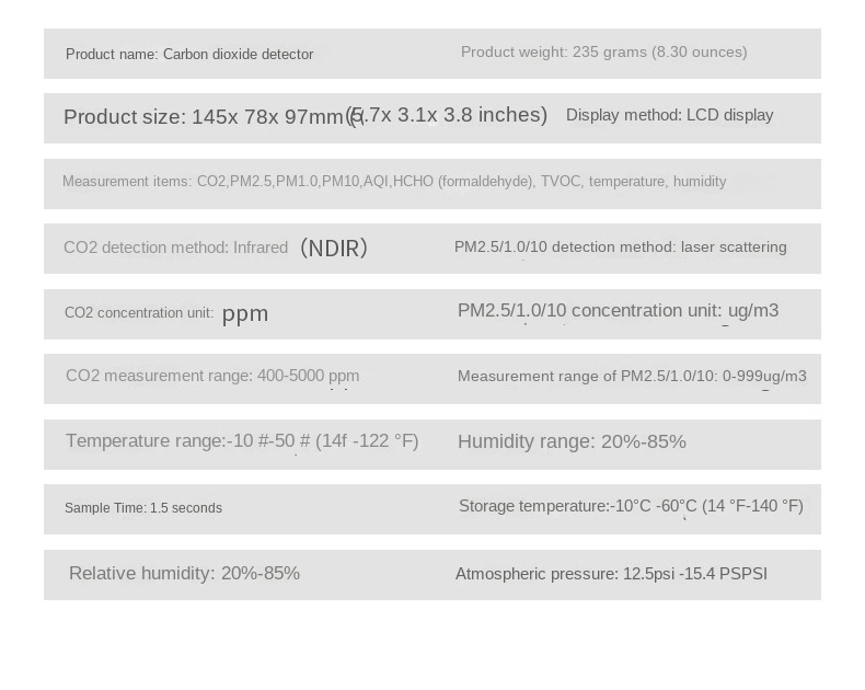 Concentration unit for HCHO and TVOC: mg/m3
